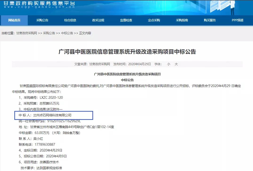 2020年4月29日,深圳市网巢科技有限公司在“河源市中医医院信息管理系统升级改造采购项目”的竞标中,凭借过硬的产品质量、扎实高效的工作作风、强大的技术实力以及良好的企业信誉以绝对的优势顺利中标。